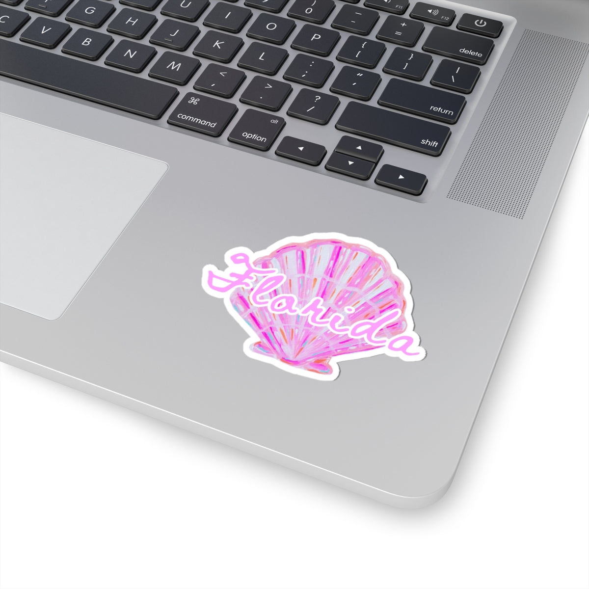A small, sun-washed shell sticker in warm orange and rosy pink, hand-lettered with "Florida" through it. It feels like a roadside stop by the coast — salt air on your skin, soft sand underfoot, and the lazy brightness of postcard sunsets. Stick it on your water bottle, laptop, or travel journal to carry a slice of coastal afternoon with you. The glossy surface makes the colors pop and catch the light, while the kiss-cut edge gives a neat, easy-peel finish that’s friendly to quick decorating sessions before heading out the door. For folks who collect travel mementos, curate beachy vibes, or want a little Florida warmth on everyday gear, this shell brings a warm, nostalgic note to daily routines and seasonal getaways.