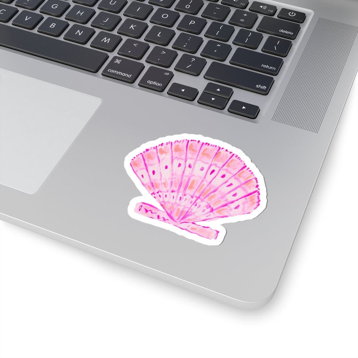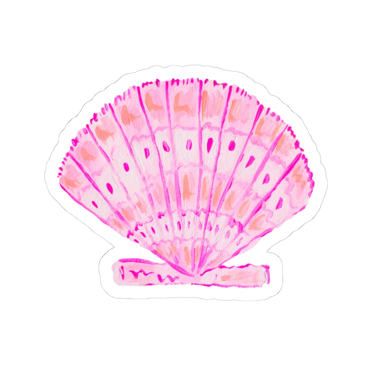 This glossy kiss-cut vinyl sticker brings a soft, summery whisper to your everyday things. Hand-painted watercolor tones of pink and coral form a delicate scallop shell with subtle speckles and brushstrokes that feel like a seaside sketchbook. It clings smoothly to laptops, journals, water-resistant cases, and windows, adding a nostalgic coastal accent without overpowering your gear. The finish is shiny and vibrant — colors pop while the scratch-resistant surface keeps the art intact through daily use. Available in white or transparent backgrounds and multiple sizes, it’s an easy way to tuck a little beach afternoon into your routine.