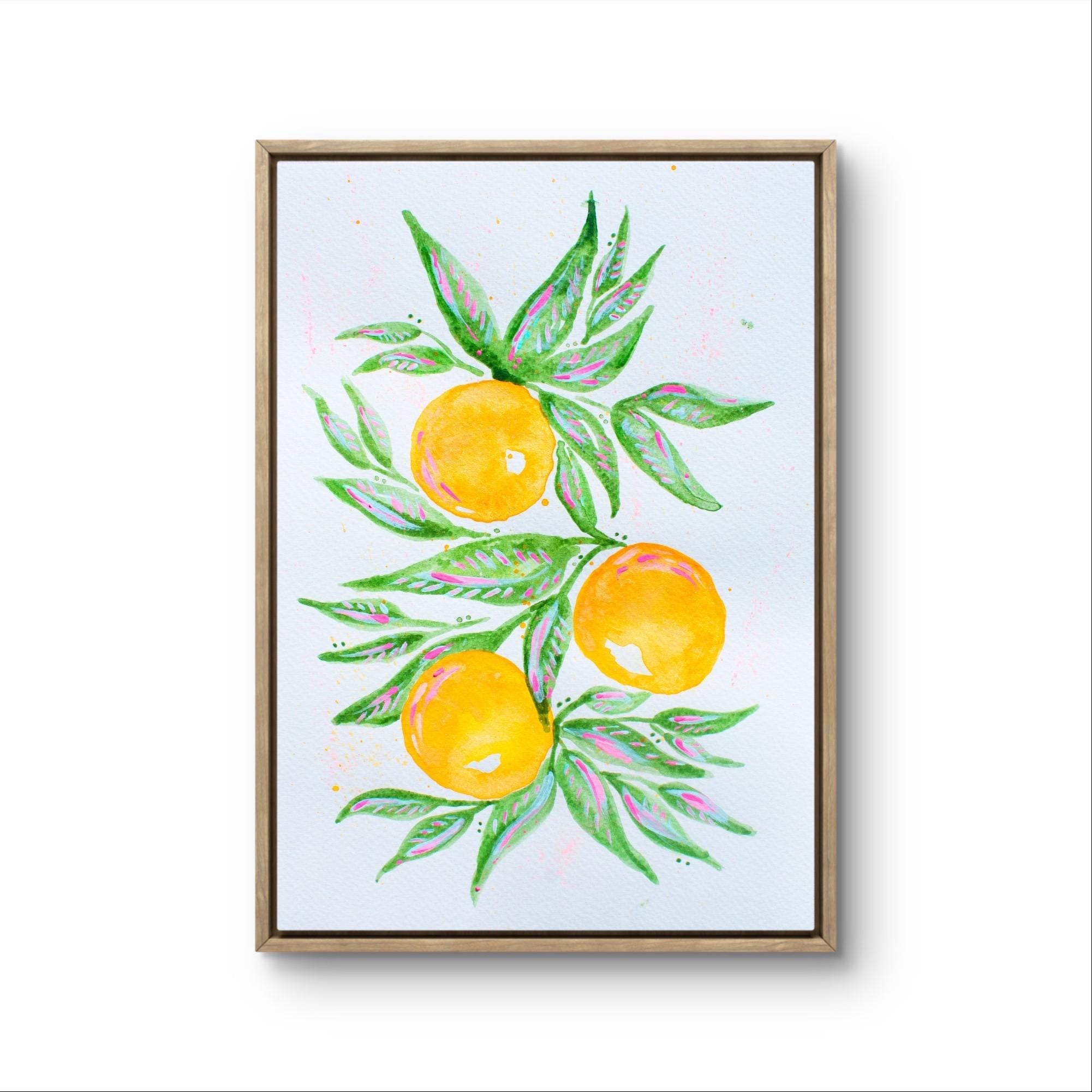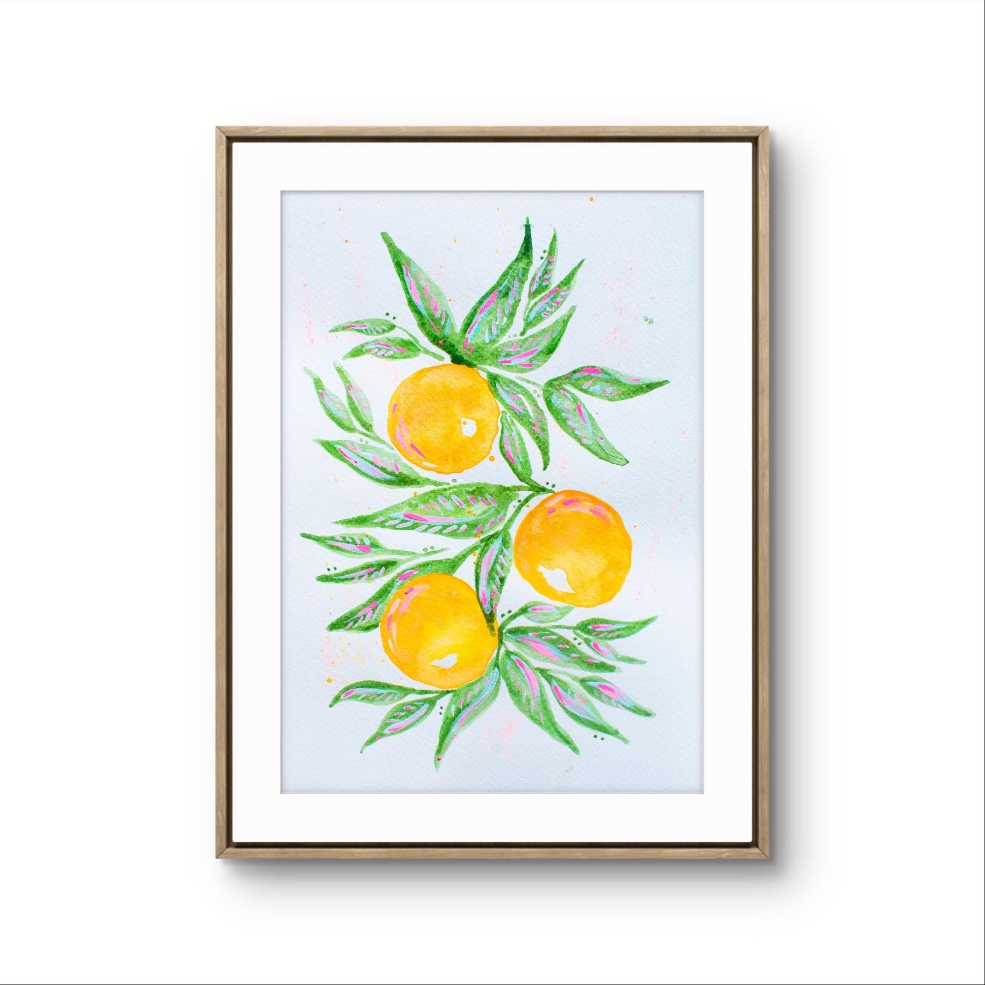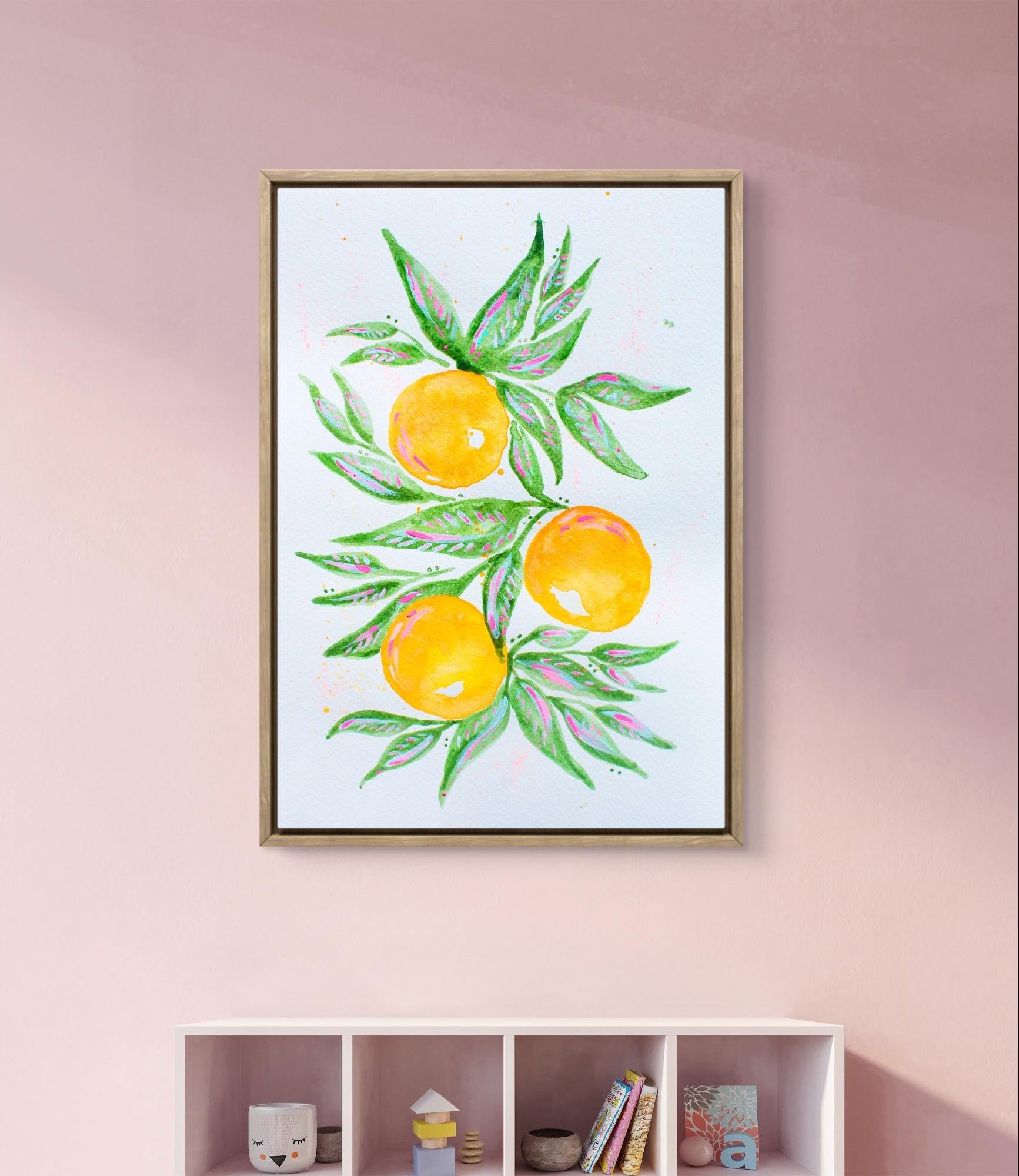 Add a splash of sunshine to your home with this bold and beautiful orange grove print! Featuring hand-painted oranges in watercolor technique printed on a canvas paper to give a natural feel to the piece.